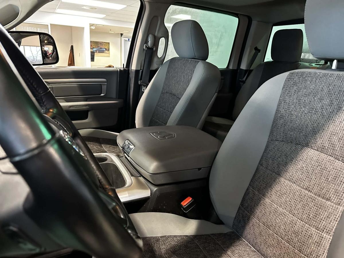 Experience reliable capability with the 2019 RAM 1500 SLT 140.5" WB, available now at Buckingham Chevrolet Buick GMC in Gatineau. This accident-free truck, as confirmed by CARFAX Canada, features a grey exterior and black interior, offering a refined look and practical design. With only 93,000 km on the odometer, it's ready for your next adventure.