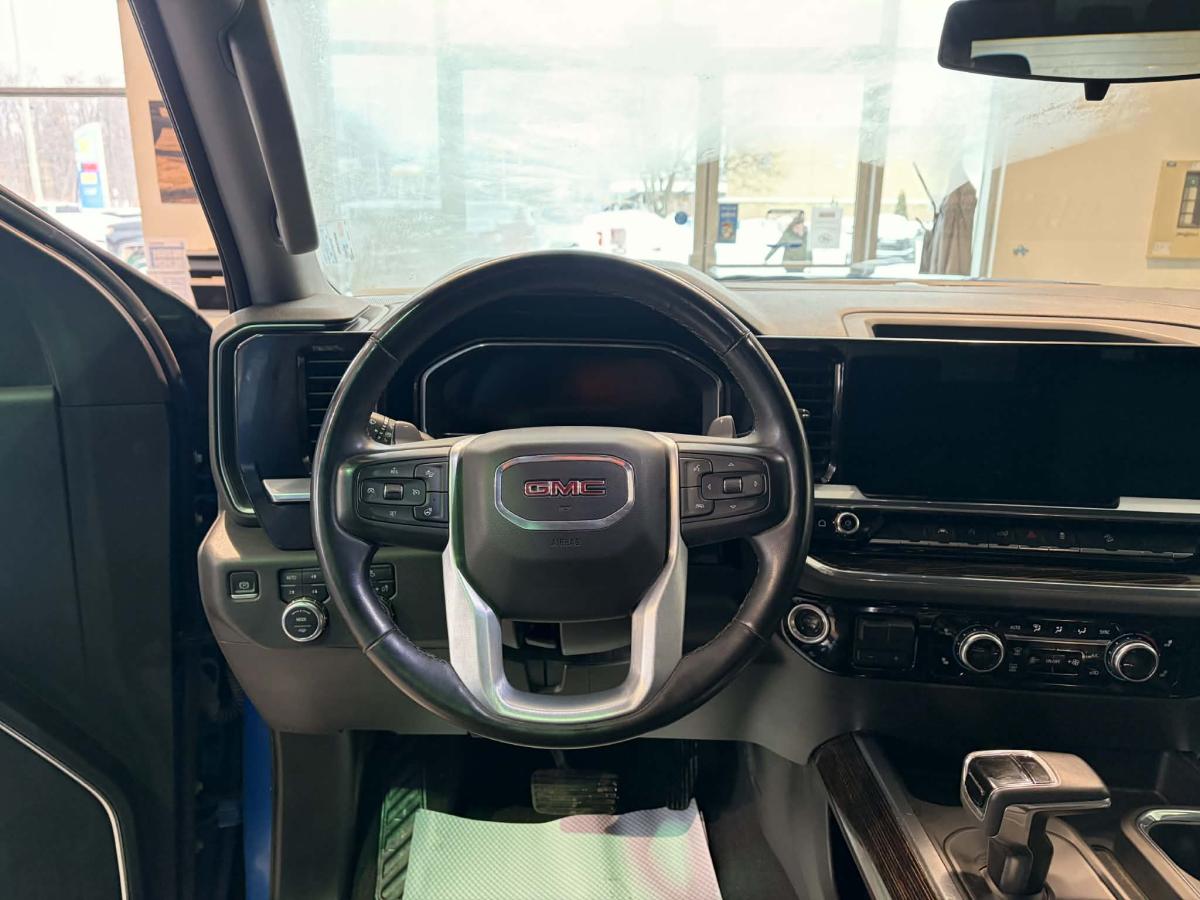 Experience the reliability and capability of the 2023 GMC Sierra 1500 Crew Cab 4x4, now available at Buckingham Chevrolet Buick GMC in Gatineau. With a single owner and a clean CARFAX Canada report confirming no accidents, this blue exterior, black interior truck is ready for its next adventure. The 3.0-litre diesel engine and automatic transmission combine for efficiency and power, while 64,000 km on the odometer ensures you're getting a well-maintained vehicle.