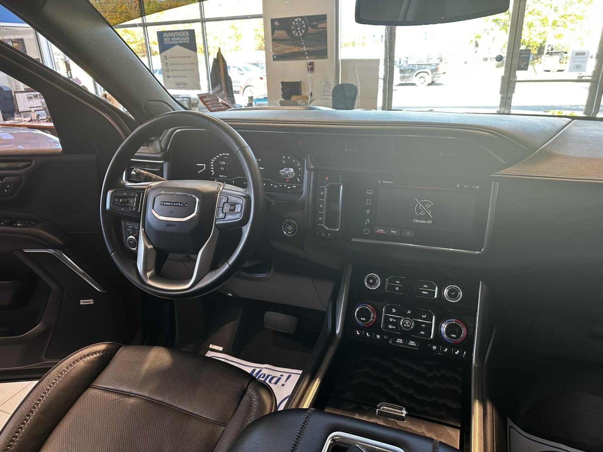 Experience commanding presence and refined capability with the 2023 GMC Yukon 4x4 Denali, now available at Buckingham Chevrolet Buick GMC in Gatineau. This used SUV stands out with its bold black exterior and matching black interior, combining luxury with rugged performance. With 68,000 km on the odometer, this Yukon 4x4 Denali offers a powerful 6.2-litre gas engine paired to a smooth automatic transmission, ensuring a confident drive on any terrain.